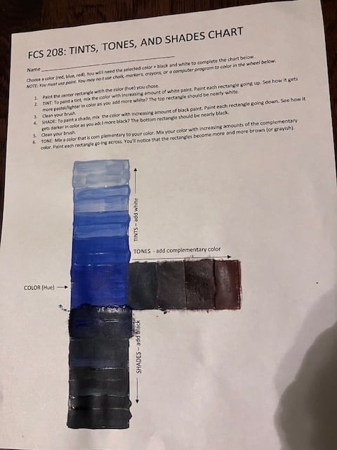 I painted the color wheel and demonstrated shading and hue techniques. This gives me hands on experience for understanding the values of color in fashion design.